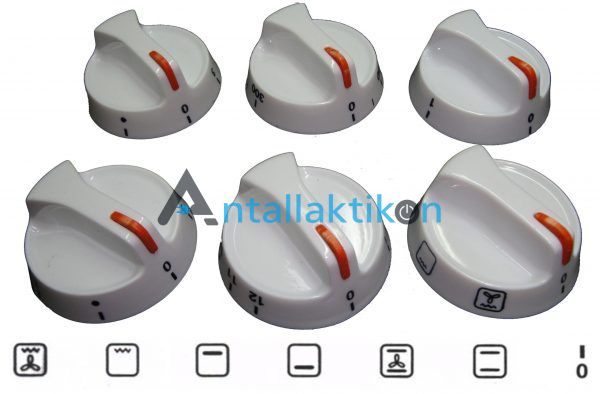 Κομβία κουζίνας αερόθερμης Σετ 6 τεμ. λευκό με πορτοκαλί ένδειξη Γενικής χρήσης