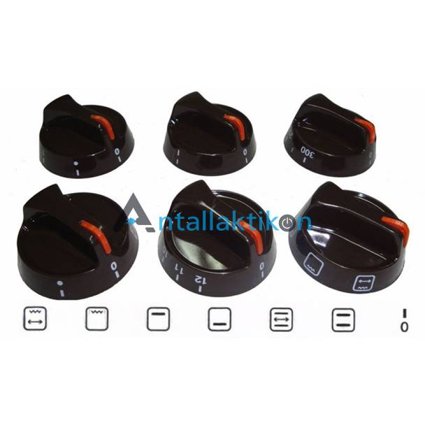 Κουμπιά κουζίνας PITSOS / SIEMENS / BOSCH/ Γενικής Χρήσης σετ 6 τεμαχίων καφέ χρώμα με ένδειξη σούβλας
