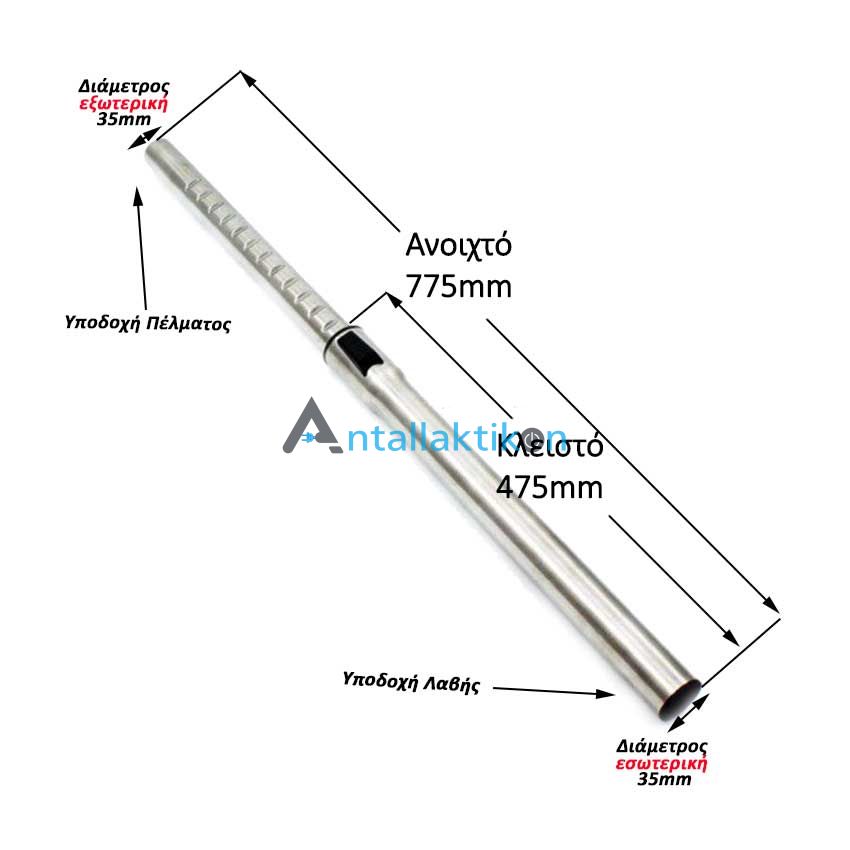 Σωλήνας τηλεσκοπικός (κοντάρι) σκούπας BOSCH / SIEMENS/ Γενικής χρήσης μεταλλικός Φ35mm